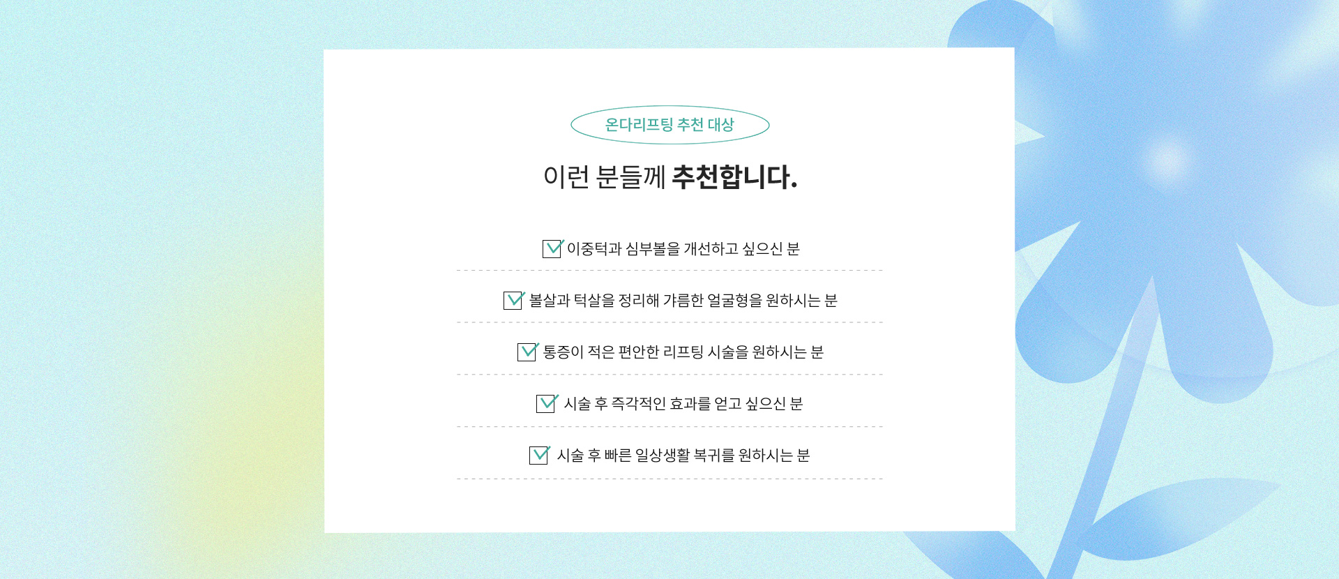 온다 리프팅을 한 번만 받아도 이중턱이나 심술보 개선 효과를 볼 수 있나요?