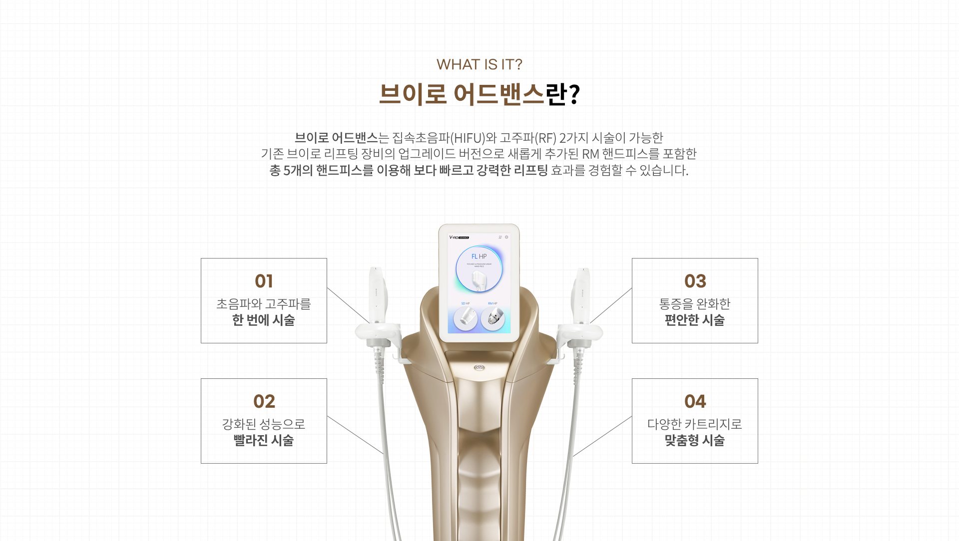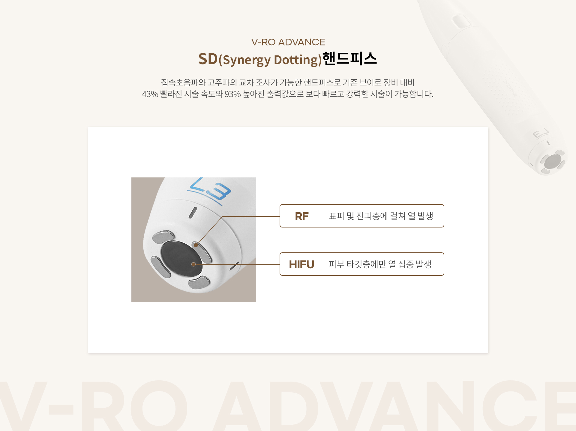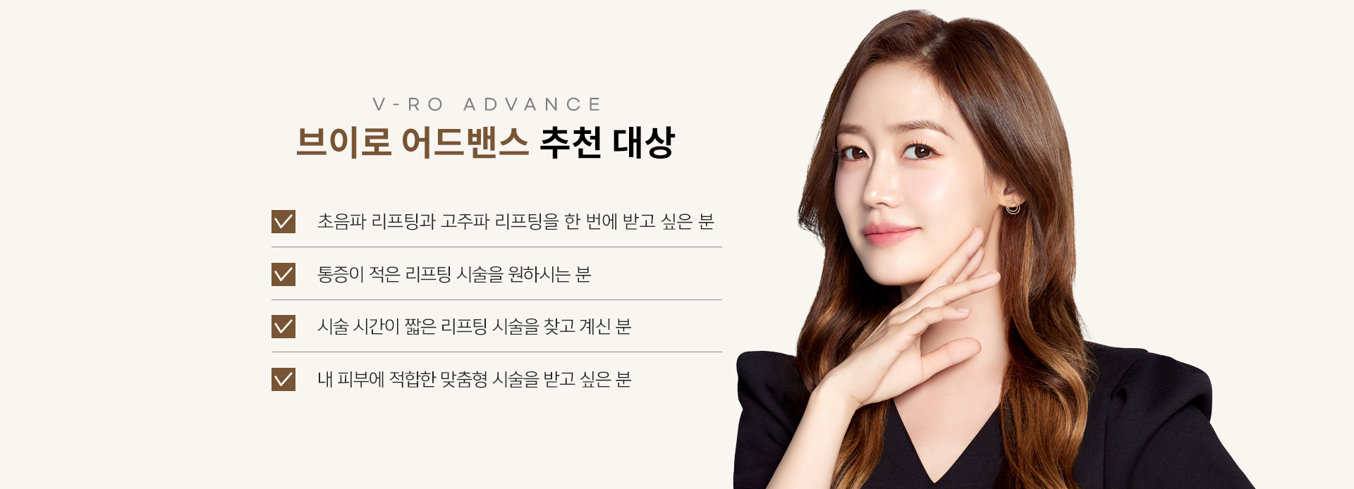 브이로 어드밴스는 집속초음파와 고주파 2가지 시술이 가능한 강력한 리프팅 시술입니다.